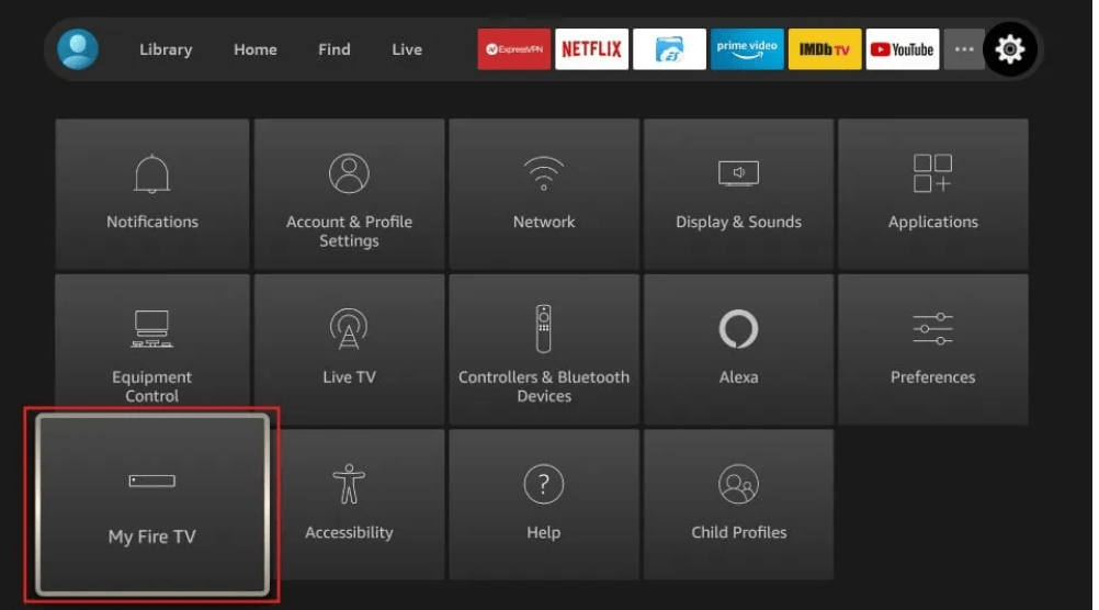 5. Dans les Paramètres, choisissez l’option My Fire TV